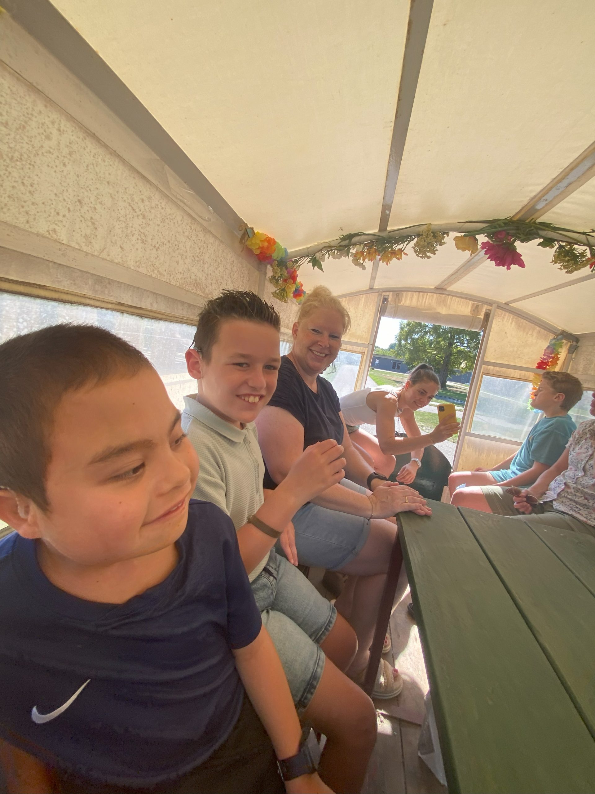 Het was ook erg gezellig in de huifkar.